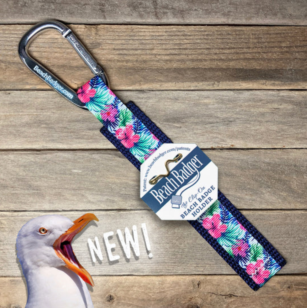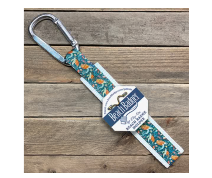 The BEACH BADGER™ is a clip-on beach badge carrier that can be quickly and easily attached or detached to nearly anything. Best of all, the Beach Badger makes it possible to wear beach badges without poking holes in your clothes! U.S. Patent No. 11,202,496 and Design Patent Pending.